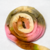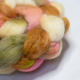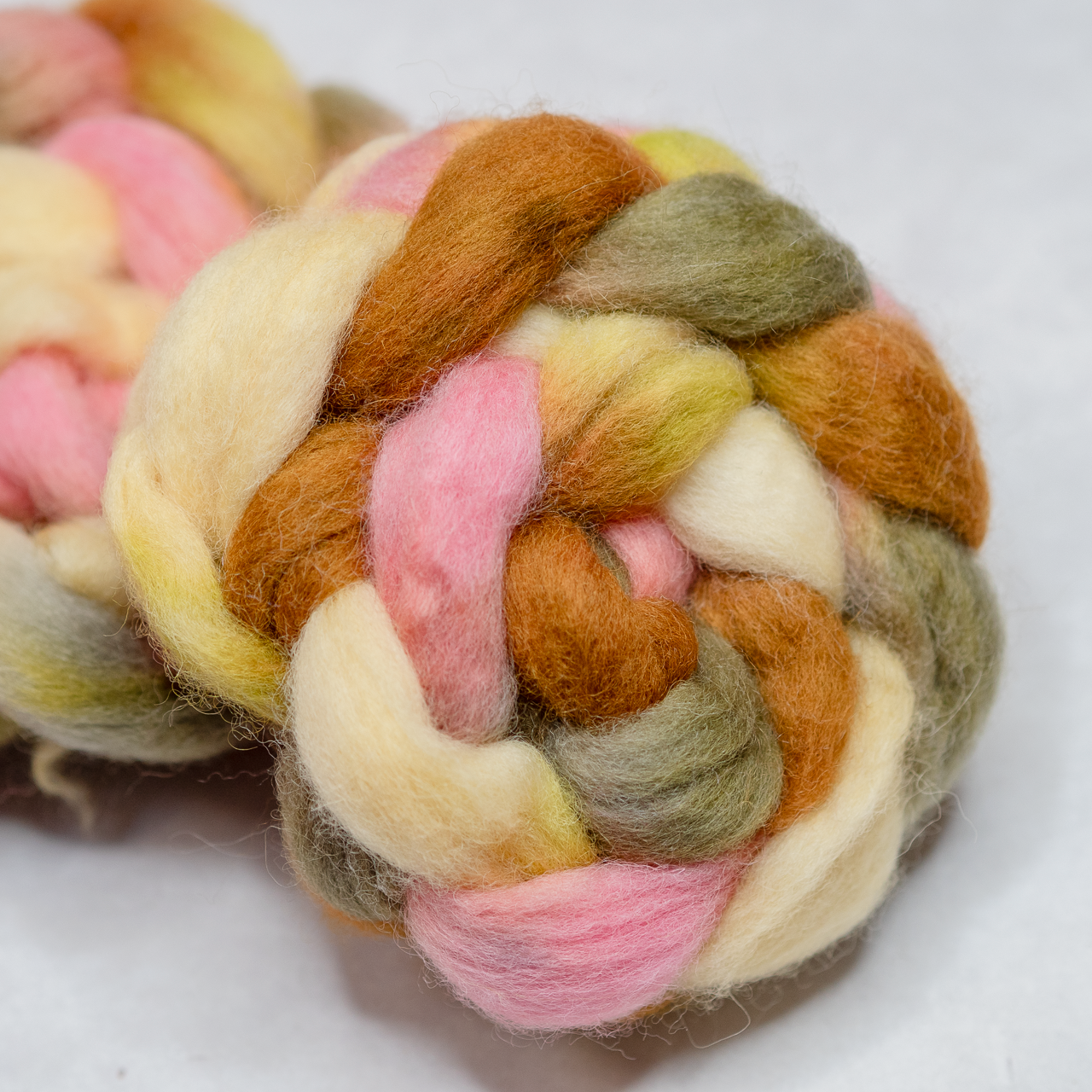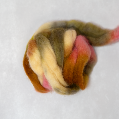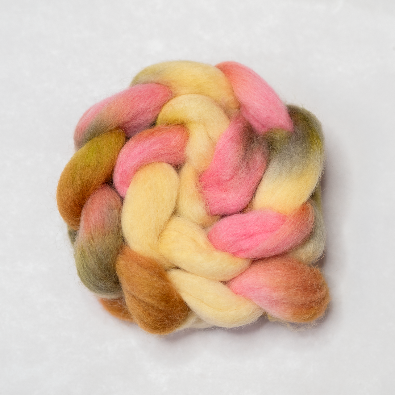 This British Kent Romney hand-dyed combed top is beautifully lustrous, and takes colour with a lovely depth.  Romney is one of my favourite fibres to spin because it has loads of character.  It great for spinning finely, but also makes a good woollen yarn, as it has quite an open character, so creates a lovely, lofty yarn.  I find it easy to wear next to my skin.