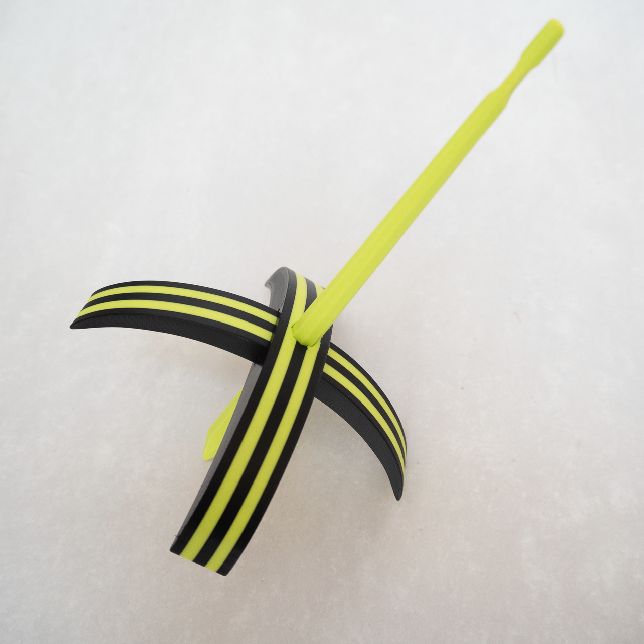 The spindle arms and shaft are made from PLA, which is a durable, biodegradable thermoplastic.