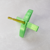 The spindle arms are made from PLA, which is a durable, biodegradable thermoplastic. Don't worry! It only starts to biodegrade when exposed to extreme heat. Jen recommends that you don't leave it in the car on a hot day. The shafts are made from moulded ABS plastic, which is known for its impact resistant properties. Handy for a drop spindle!