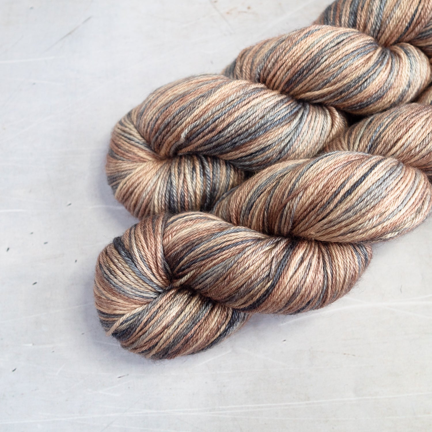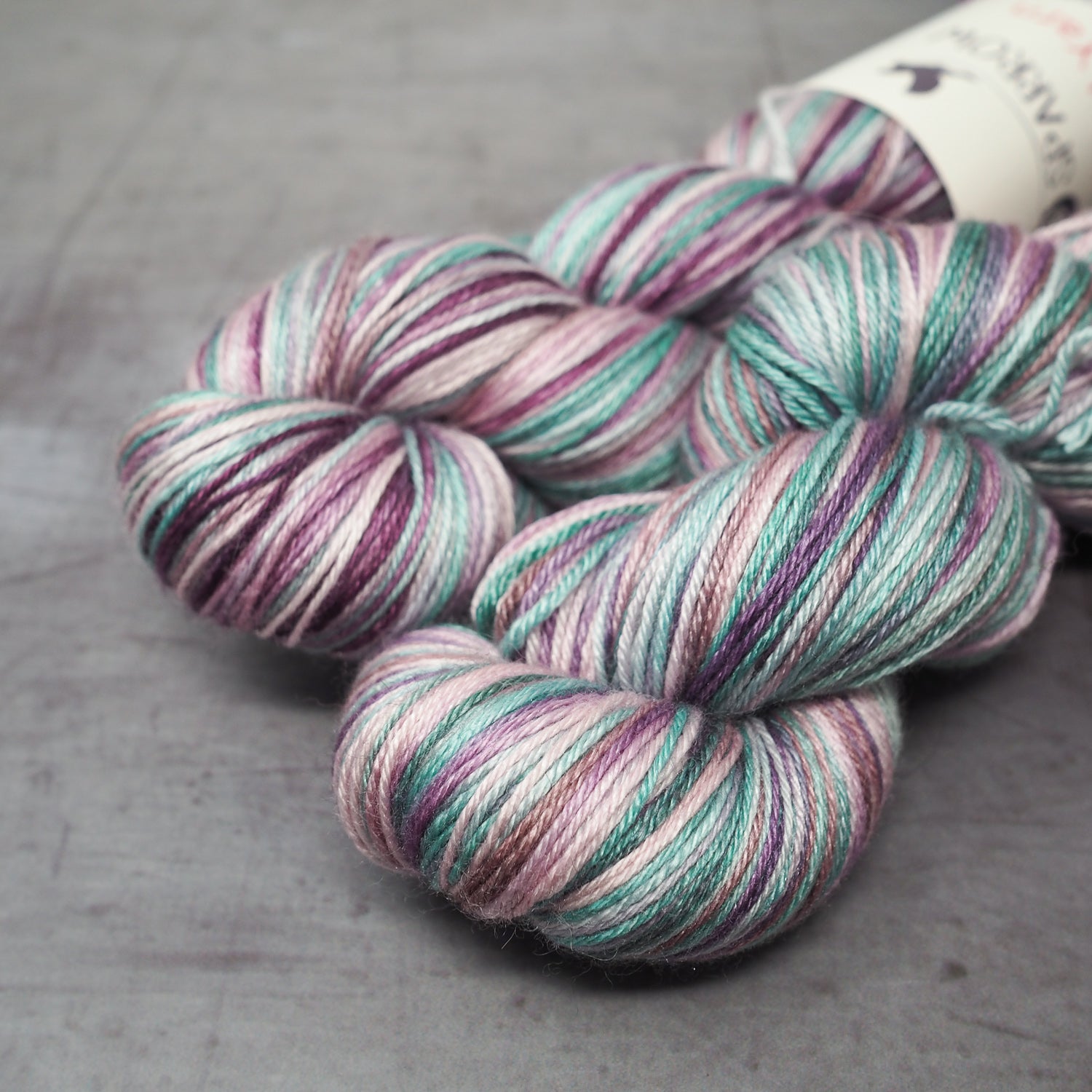 Oh-So-Fine Sock is a silky-soft sock/fingering weight yarn with excellent drape and a luxurious sheen. It's very soft against the skin, and is wonderfully strong. It's great for luxury socks, thanks to the hardwearing BFL and the strength of the silk. Its softness and drape also makes it perfect for shawls and drapey tees.