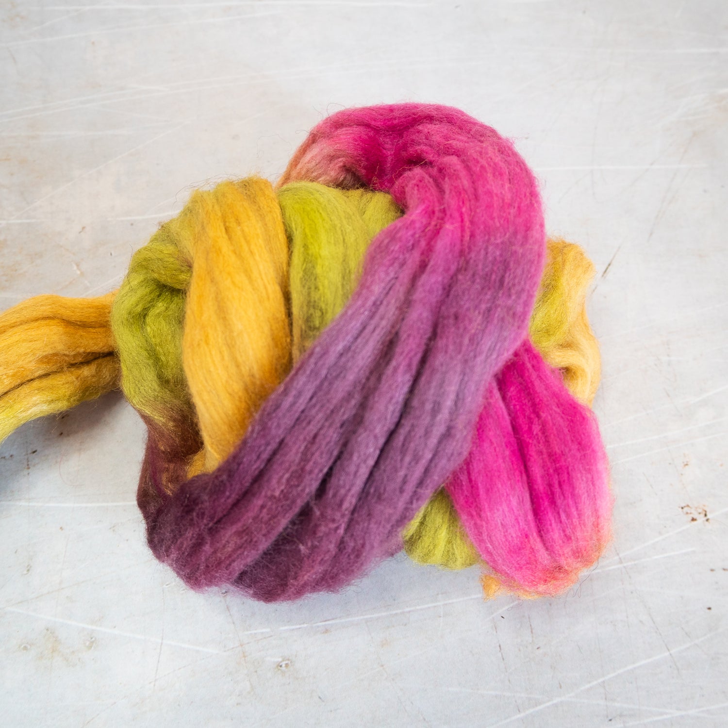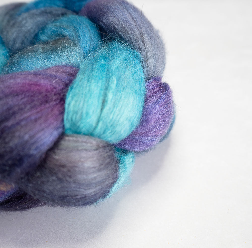 This blend of Polwarth and Shetland wool and silk is an absolute delight to work with. It's so poofy, soft and textured. It will produce an exquisitely characterful yarn: