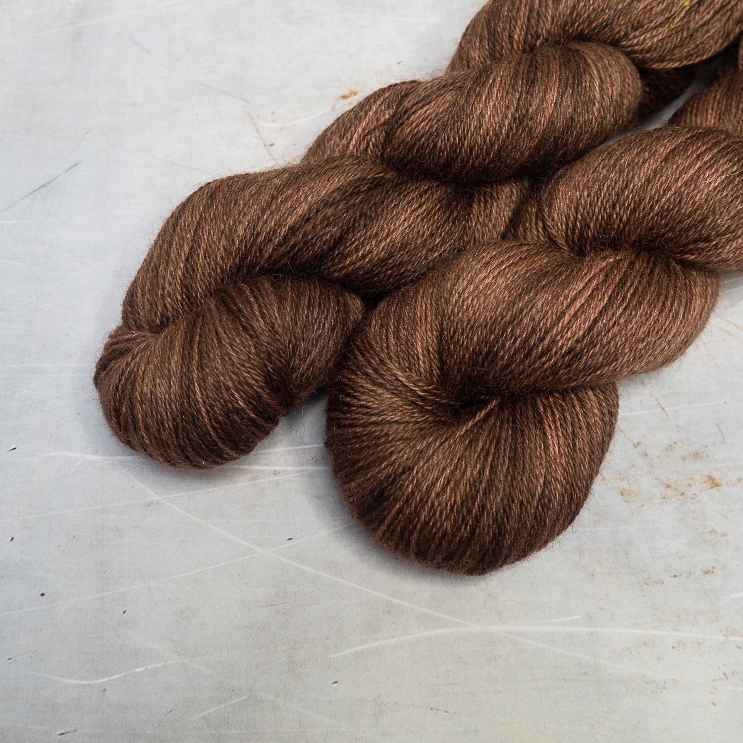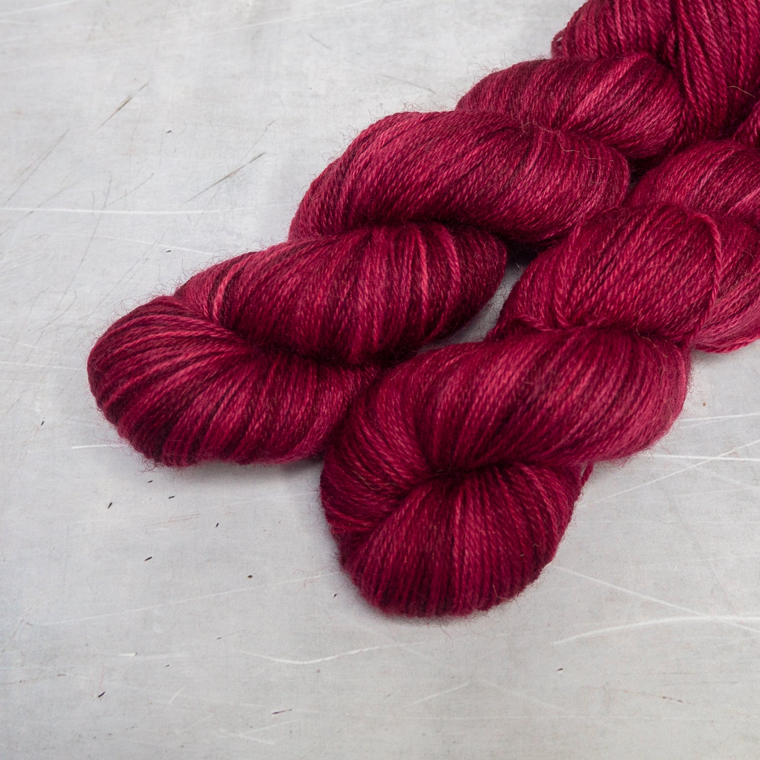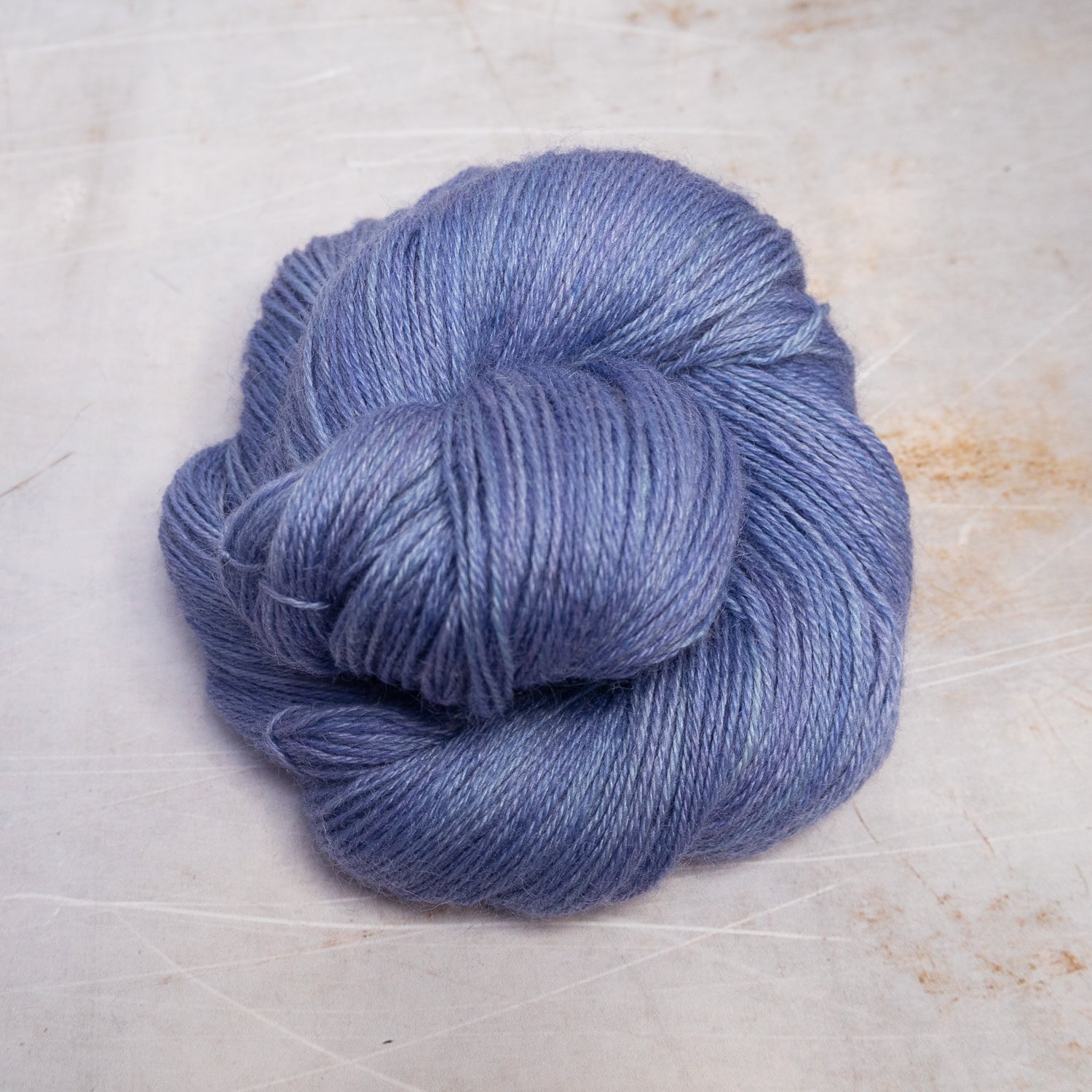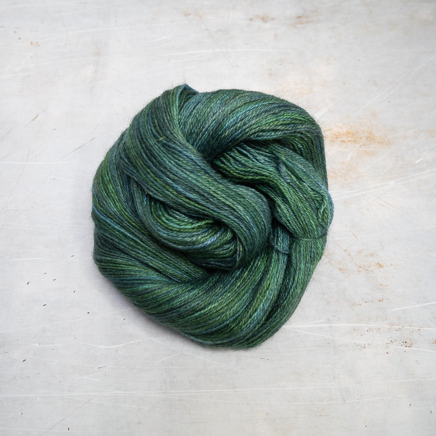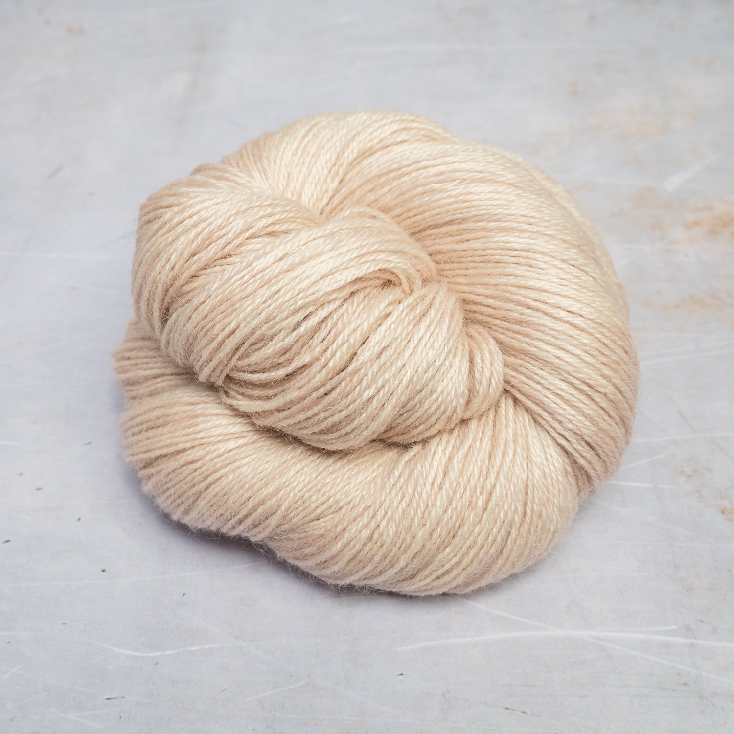 It's a fantastic mix of lustrous, textured Romney and silk, which adds drape and strength to the 3-ply construction.