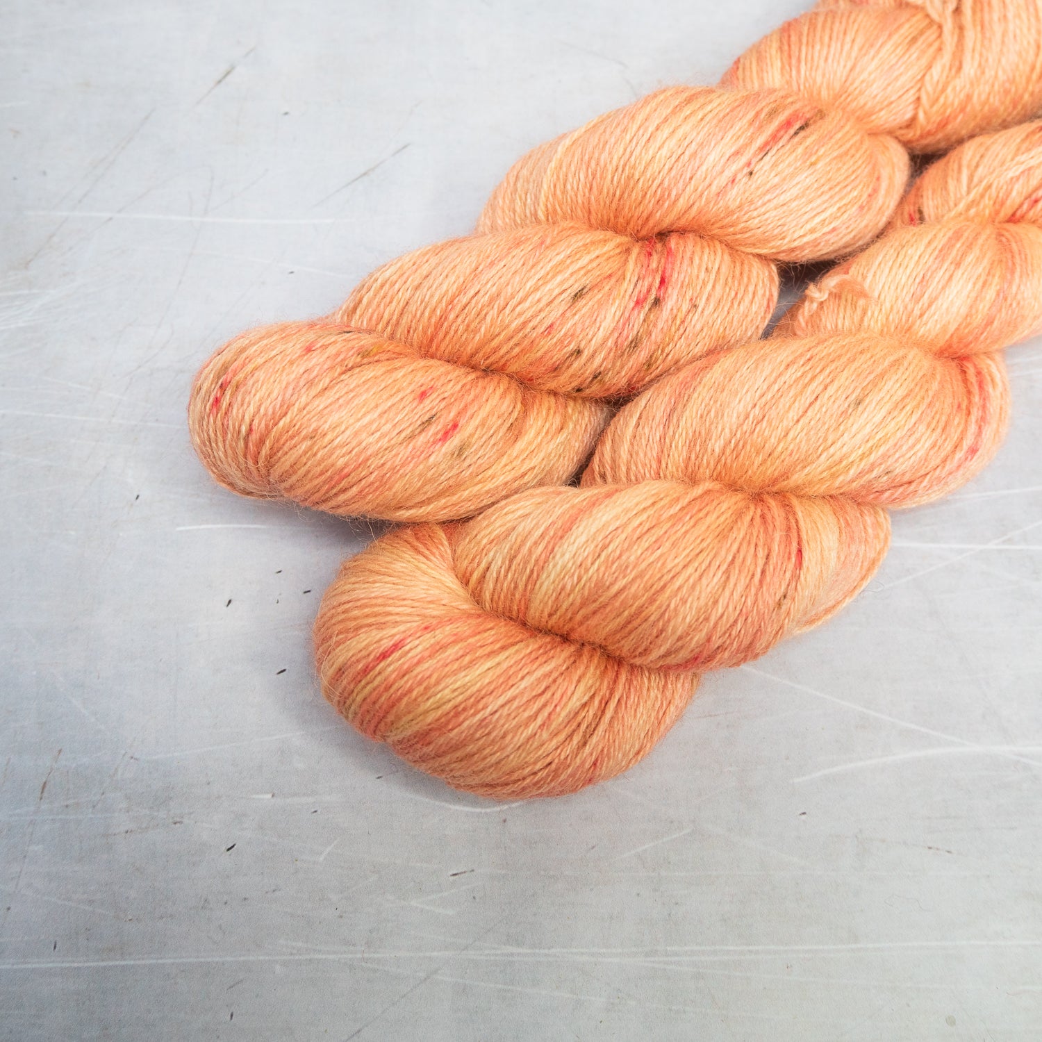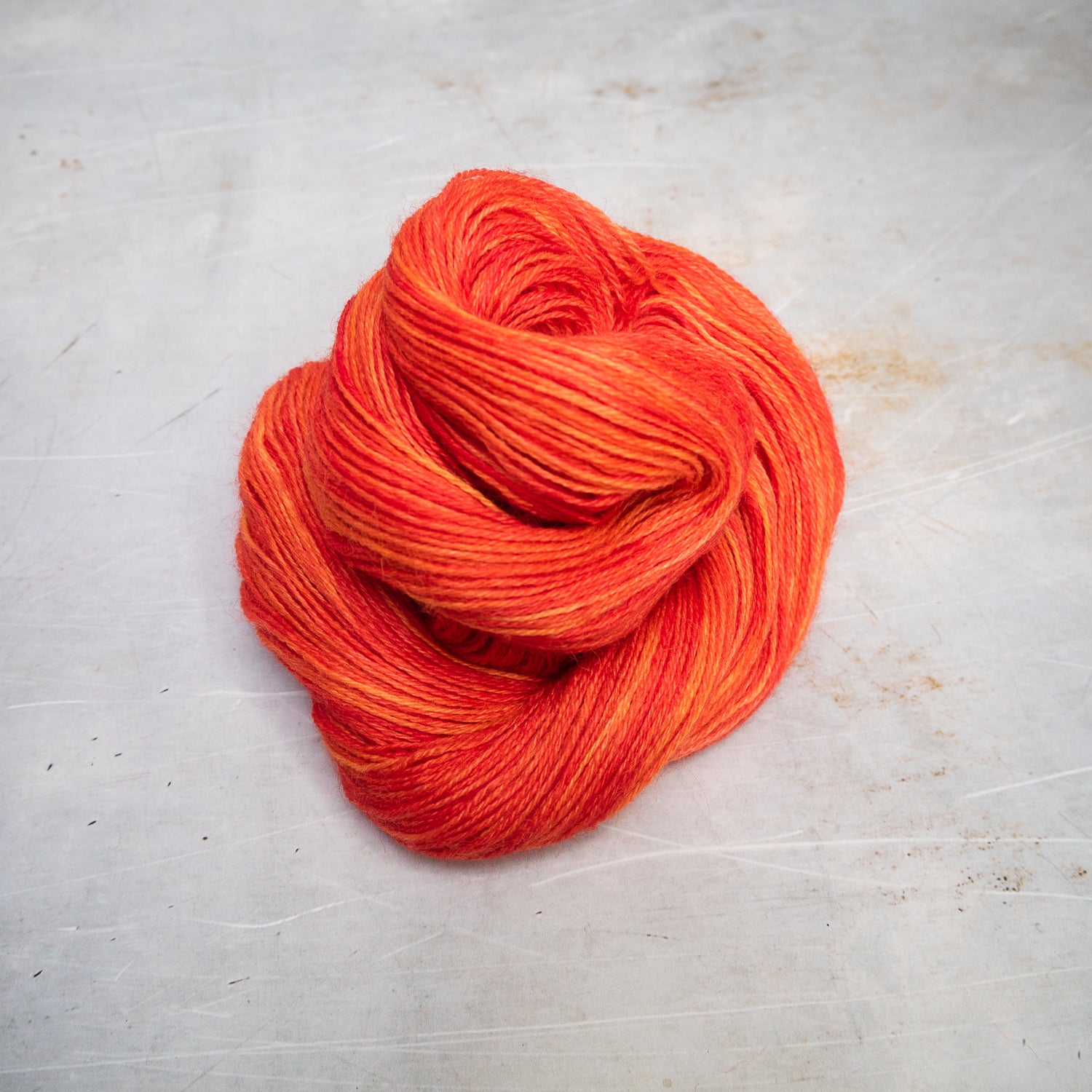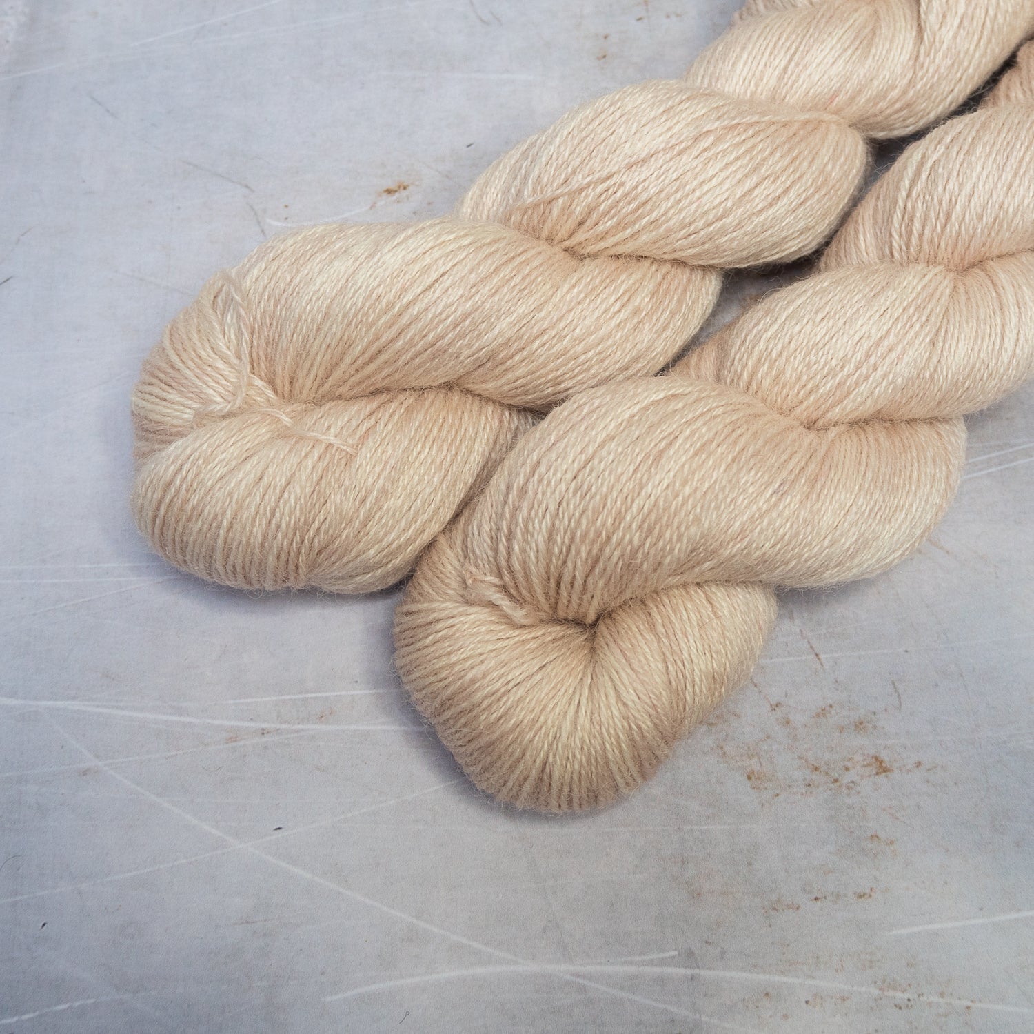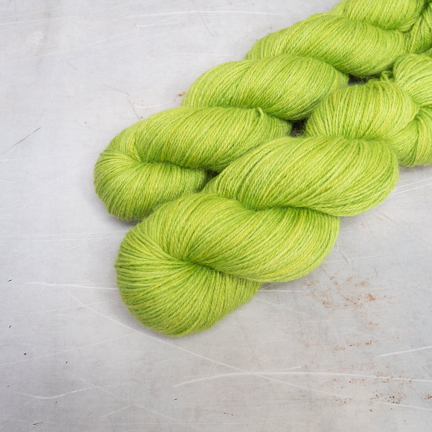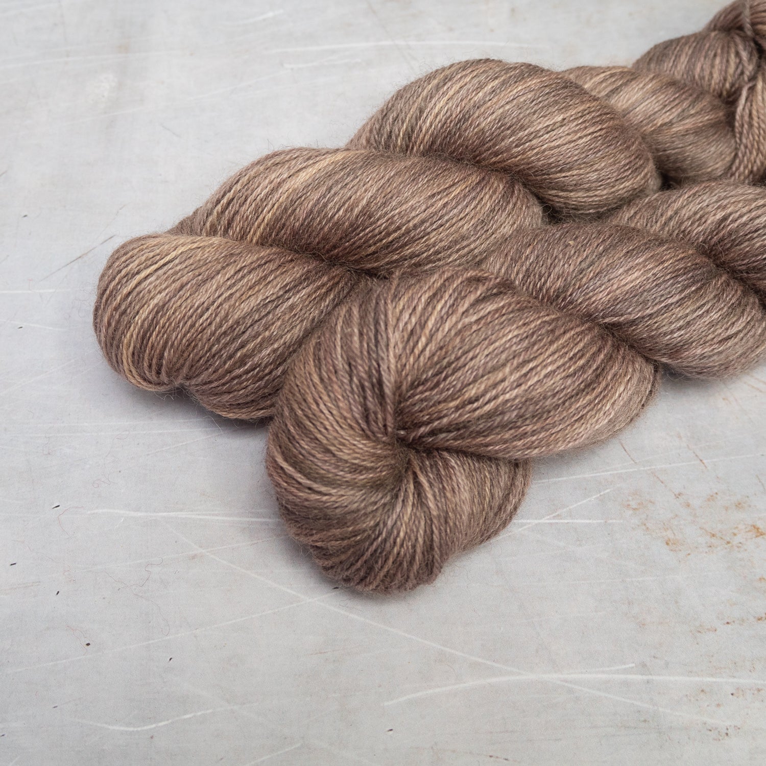 It's a fantastic mix of lustrous, textured Romney and silk, which adds drape and strength to the 3-ply construction.