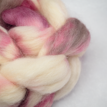 This blend of three of my favourite fibres is an absolute winner. It has poofy softness from the Polwarth, silkiness from the fine Romney and strength from the supersoft mohair. Romney and mohair both take dye with a beautiful intensity that is offset by the softening effect of the Polwarth. It's perfect for socks and mitts as it's really hardwearing, as well as warm and soft. It drafts beautifully and spins up into a yarn that is pill-resistant with a gentle halo.