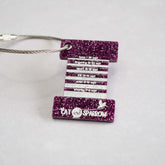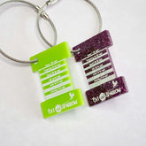 Each gauge has information on the wpi for different yarn weights, and a simple thickness line for when you don't want to wrap the whole inch. Available in lime and sparkly purple.