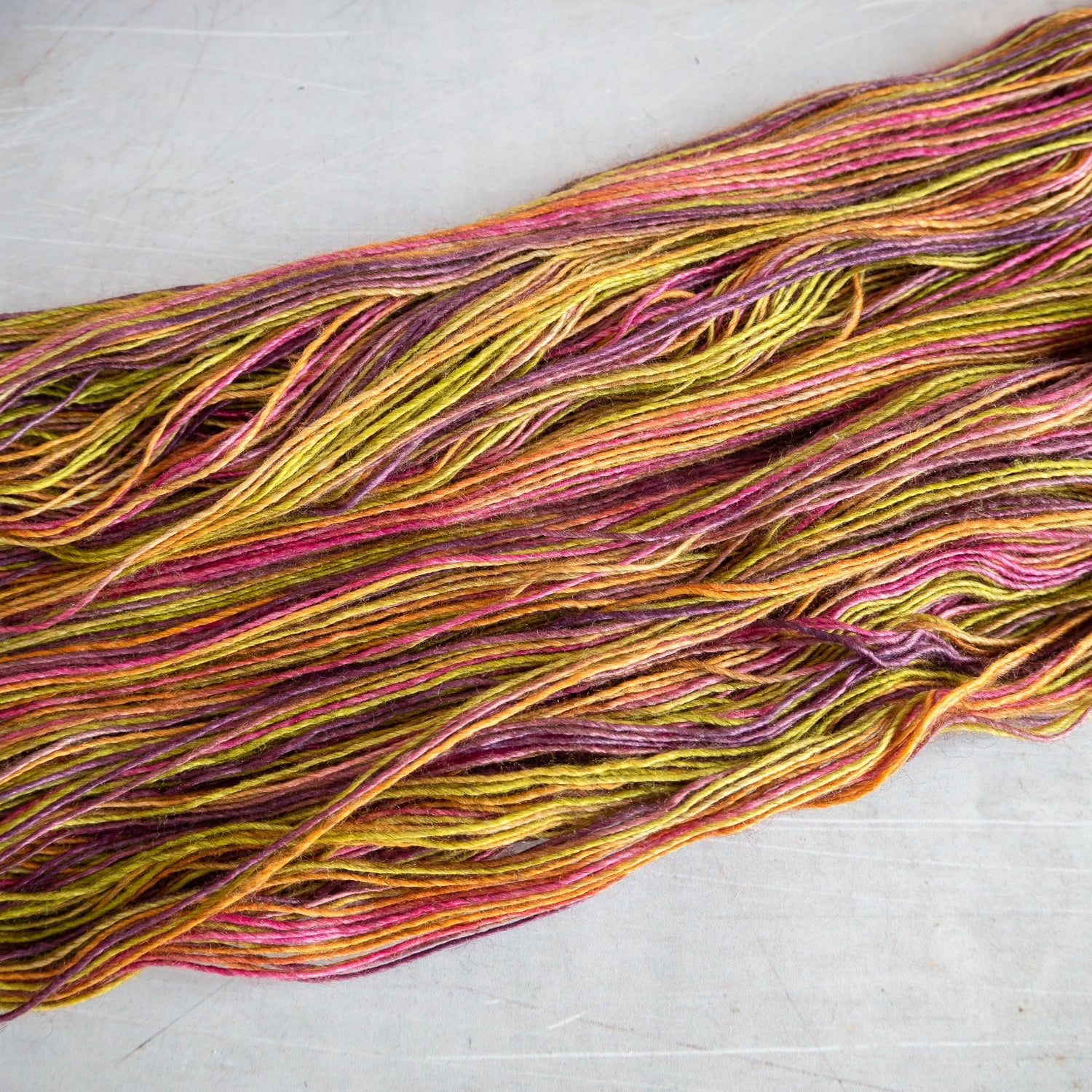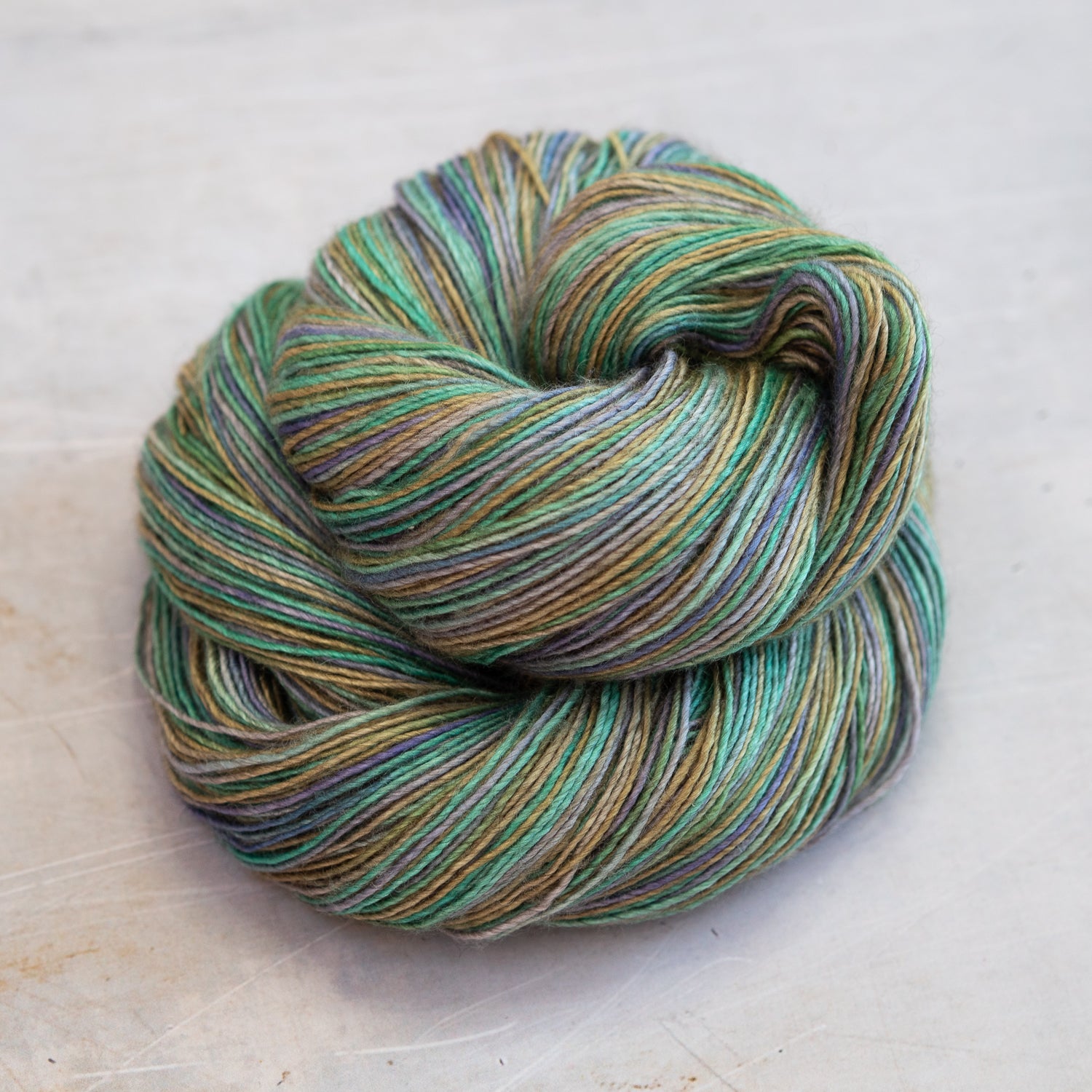 This single ply yarn is absolutely delicious. The Merino is buttery soft, the silk adds and sheen and the yak... Well, the yak is downy soft and very, very warm. It adds a lovely, subtle halo to an already beautiful blend of fibres. This yarn has everything - elasticity, drape, warmth, softness. It's perfect for luxurious scarves, shawls or cowls and flowing cardigans or tops.