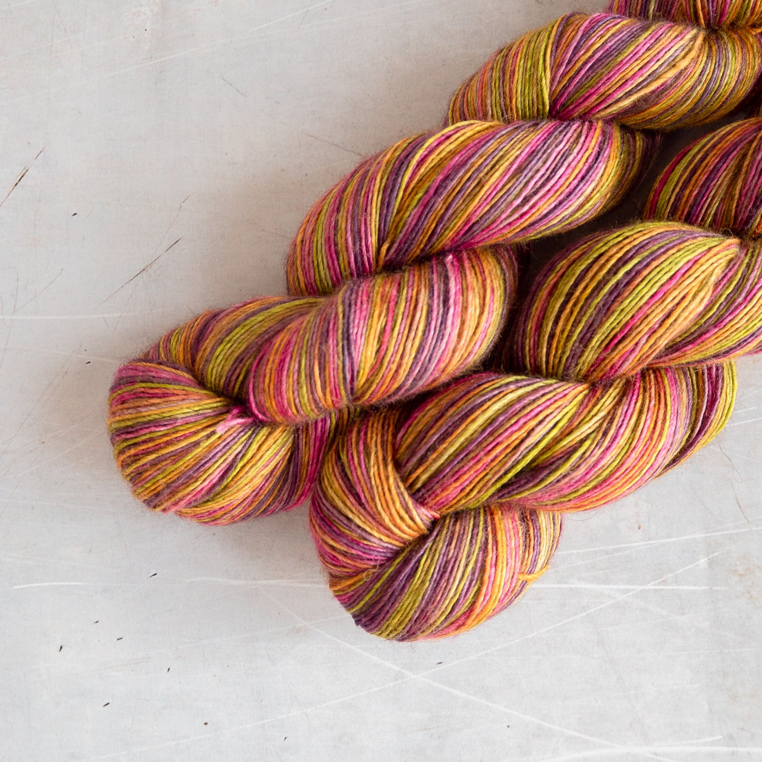 This single ply yarn is absolutely delicious. The Merino is buttery soft, the silk adds and sheen and the yak... Well, the yak is downy soft and very, very warm. It adds a lovely, subtle halo to an already beautiful blend of fibres. This yarn has everything - elasticity, drape, warmth, softness. It's perfect for luxurious scarves, shawls or cowls and flowing cardigans or tops.