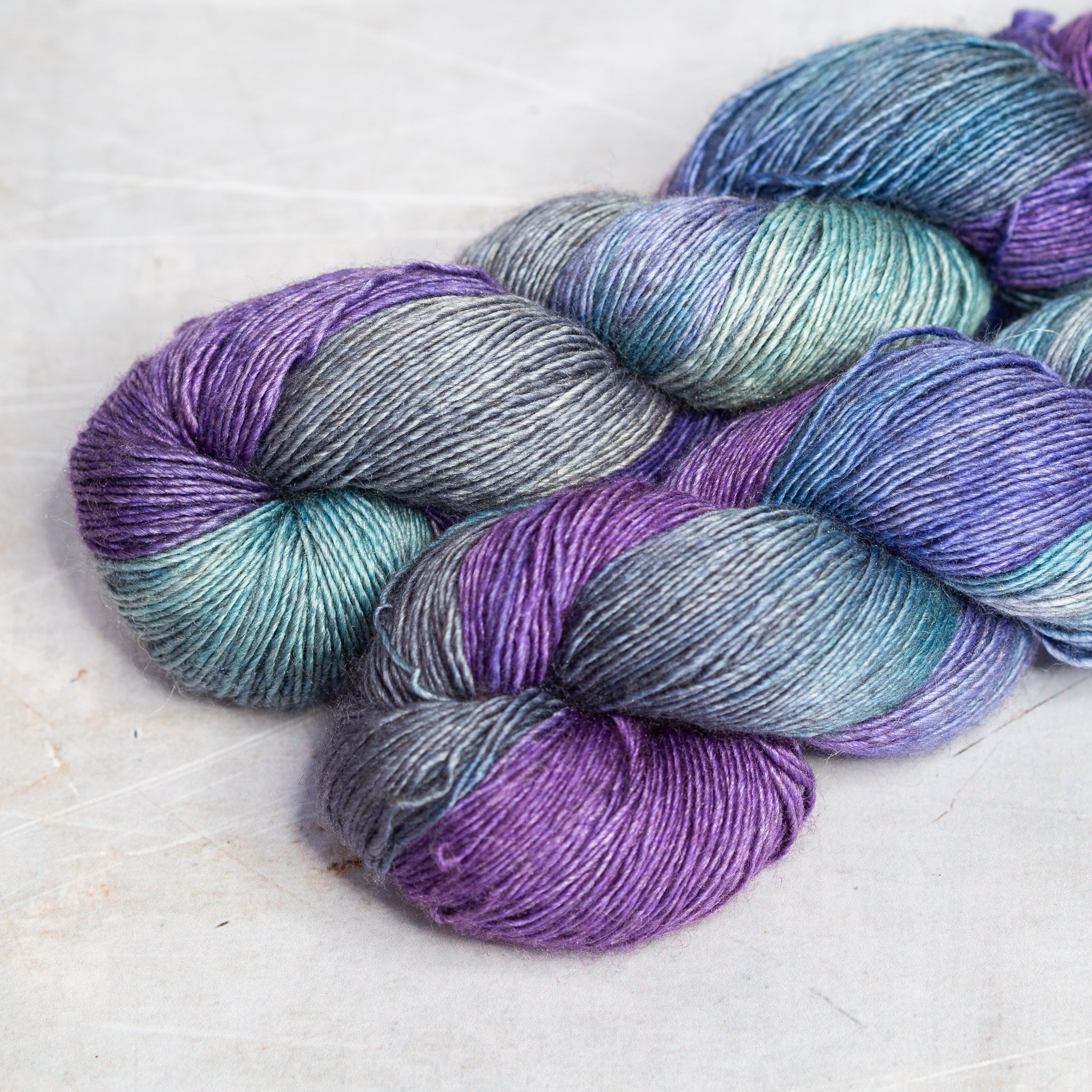 These skeins all weigh 120g, which gives you a little more to work with. Each 120g contains approximately 480m - enough for a suberbly squishable shawl.